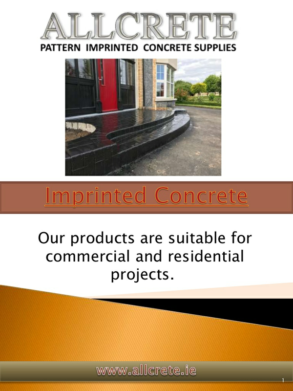The Benefits of Using Pattern Imprinted Concrete at https://allcrete.ie/tools/ Find Us : https://goo.gl/maps/beChDcZxScR2 Deals In ---- Imprinted Concrete Printed Concrete Stamped Concrete Concrete Supplies Concrete Tools The pattern imprints can create virtually any design you want whether you would like to match it with your walls in terms of color and pattern, or communicate something.